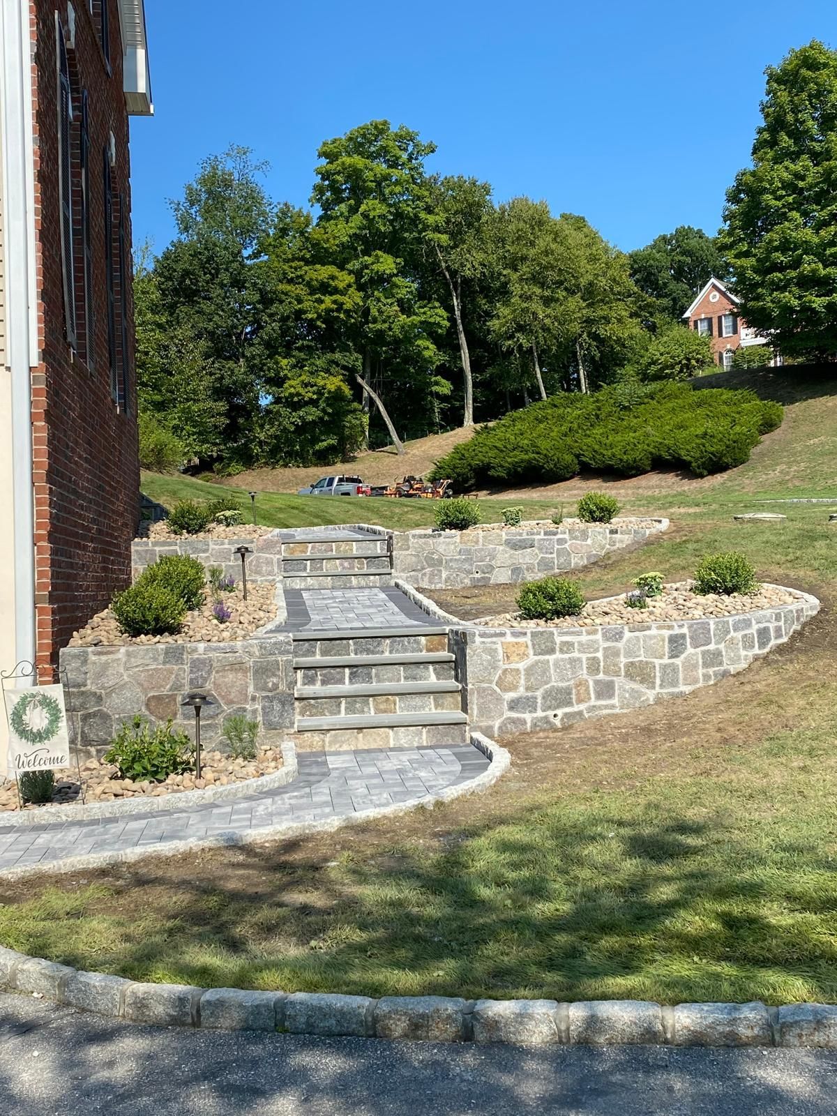 - Retaining walls and stone steps